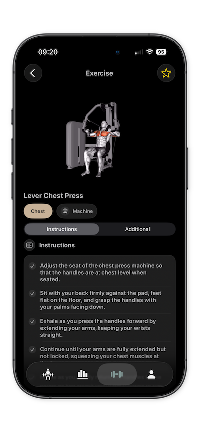 Choose from a wide variety of exercises, each accompanied by videos showing engaged muscles and precise instructions.